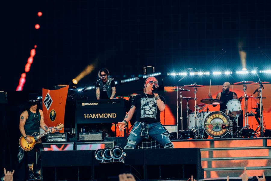 En cuanto a la sintonía entre los integrantes y sus cualidades, solo hay un titular: Slash está en una forma excelente. Slash maneja el timón. Slash sostiene al grupo. Duff y su bajo no desentonan tampoco, aunque su presencia esté reservada en la retaguardia. En la otra guitarra, Richard Fortus se anima acompañando y alternando algunos solos. Y como ya se ha dicho, Axl es un histograma de claroscuros donde pesa más la cal que la arena. Comenzó bien, pegó un gran bajonazo pero al menos se desgañitó en el tiempo de bises, bajando por fin el telón con “Don’t Cry” y “Paradise City”.