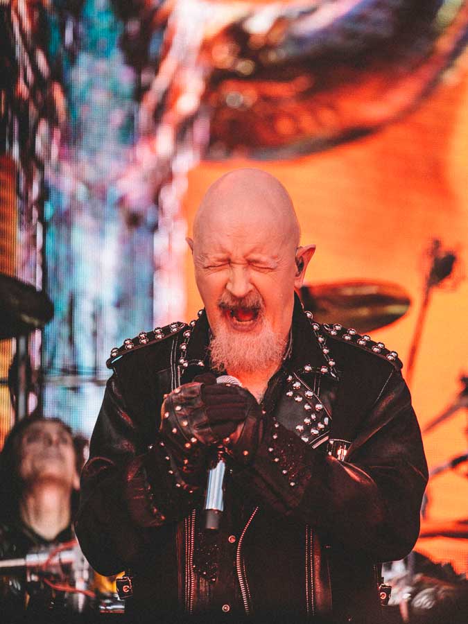 Si colocas a Judas Priest el mismo día y casi a la misma hora que Ozzy Osbourne, uno de los dos símbolos británicos debe ocupar el trono antes que el otro. Pero la organización quiso que las descargas fueran sucesivas, por lo que el grupo liderado por Ian Hill y Rob Halford tuvo que actuar antes en el “deseado” Stage 2. Resultado: colapso absoluto de movimientos entre los dos escenarios principales. Normal, nadie se movió ante uno de los grandes conciertos que serán recordados de esta edición, tanto por sonido como por disposición de los protagonistas. Tan pronto como los primeros acordes de “Firepower” dieron paso al micro de Haldford, se despejó la incertidumbre: el cantante saludaba la noche con una notable voz, bendecido por la compañía de un brillante Richie Faulkner y un más que cumplidor Andy Sneap a las guitarras (suple desde hace meses a Glenn Tipton por su cada vez más notorio Parkinson). Así lo apuntalaron temas como “Grinder”, “Sinner” o “Lightning Strike”, que sirvió de correa de transmisión para adentrarse en terreno clásico (miles de gargantas acompañaron “Turbo Lover”) e irremediablemente lanzados por la pendiente con “Freewheel Burning”, “You’ve Got Another Thing Comin” o “Hellbent for Leather” (fusta y motocicleta incluidos) y el lucimiento total de las cuerdas metálicas y vocales en “Painkiller”. Pero es que faltaba lo mejor: los bises regalaron la aparición estelar de Glenn Tipton, quien se unió a la comitiva para ejecutar “Metal Gods”, “Breaking the Law” y “Living After Midnight” en un final apoteósico.