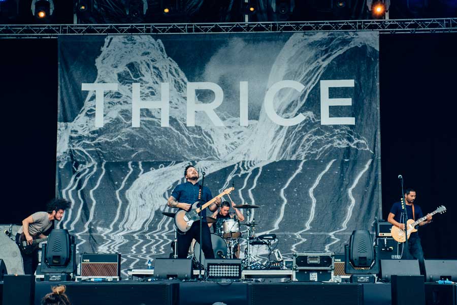 California daba la bienvenida a los asistentes para iniciar la segunda jornada desde el Escenario 2. Cuna de grandes grupos y estilos, entre toda la mezcolanza de géneros que se fusionaron durante la década noventera, el post-hardcore sirvió de crisol para aunar riffs potentes, experimentación, agrias melodías y el lamento emo. Thrice ya han superado cualquier etiqueta desde hace tiempo, imprimiendo elegancia no solo a su música sino a sus directos. A ello contribuye el armazón compacto tejido bajo la batuta del cantante Dustin Kensrue y plasmado en temas que arrastran al espectador desde la calma (“Exile” o “Deadalus”) hasta la ira (“Black Honey” o “Silhouette) pasando por la épica de ambas facetas (“Hurricane”). Los fans disfrutaron también de un nuevo single (“The Grey”), el cual indica que el futuro del grupo pasa por un nuevo disco.