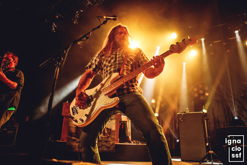 Sea porque su legión de seguidores es mayor de lo que una pensaba o porque hacía más de una década que no pisaban una sala de la capital, La Riviera mostró anoche un aspecto que hacía mucho tiempo que no veía: público ocupando las escaleras, la parte superior y llegando en la parte de abajo hasta casi tocar el puesto de merchandising. Dio gusto estar y poder disfrutar del show que ofrecieron. Ponerle, si acaso, el pero de no haber tocado más tiempo, aunque visto cómo sigue instaurado el estándar de alrededor de hora y media por concierto, haré la vista gorda.