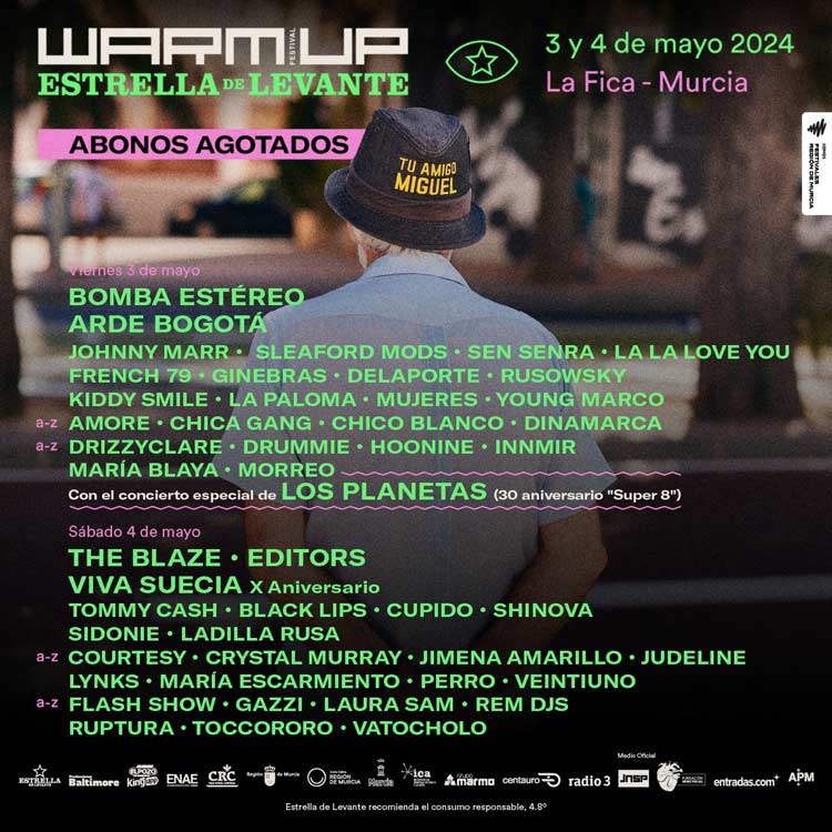 Los próximos días 3 y 4 de mayo el recinto de La Fica volverá a acoger una nueva edición del WARM UP Estrella de Levante. Dos días de músicas dentro y fuera del recinto murciano, que contará con cuatro escenarios por los que pasarán artistas tan atractivos como Bomba Estéreo, The Blaze, Arde Bogotá o Editors.
