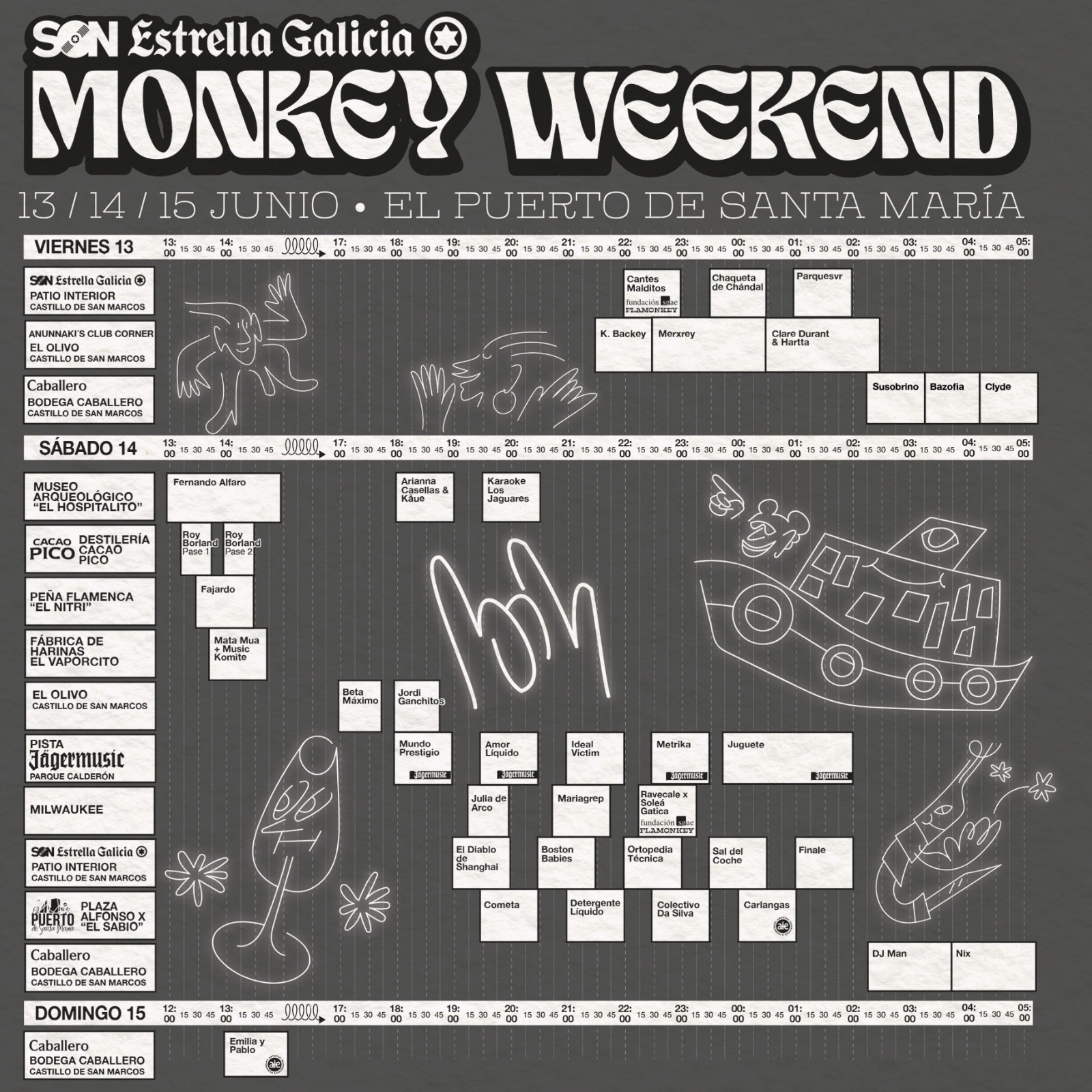 El festival Monkey Weekend, que se celebra los días 13, 14 y 15 de Junio en El Puerto de Santa María (Cádiz), ya tiene horarios para esta edición de 2025.