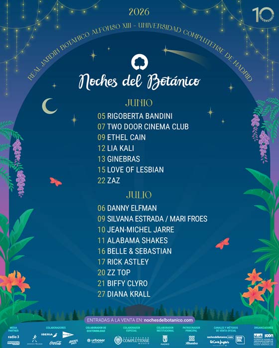 Tras reunir a más de 185.000 asistentes en su pasada edición, Noches del Botánico se prepara para seguir creciendo en su edición de 2026. Para ello han comenzado a confirmar una pequeña muestra de artistas y bandas que se pasarán por el coqueto recinto ubicado en el Real Jardín Botánico Alfonso XIII de la Universidad Complutense de Madrid durante los meses de junio y julio del próximo año.