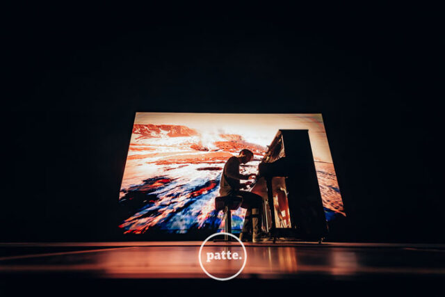 El espectáculo se desplegó en secciones que eran capítulos vivos de la vida del artista. La primera nos llevó a la introspección: sentado al piano, Vanzo nos llevó del asombro y la alegría infantil a la melancolía más profunda, mientras la luz cálida de la vela y las proyecciones envolvían al público en una atmósfera de intimidad casi palpable.